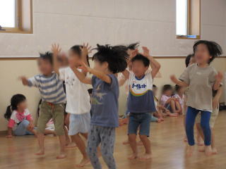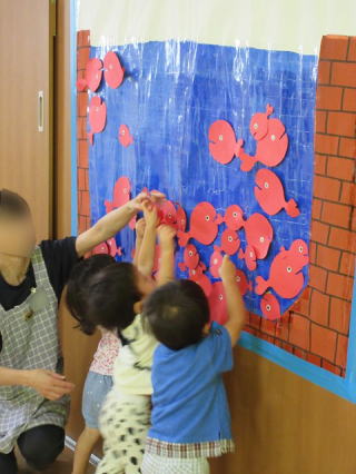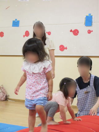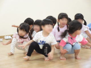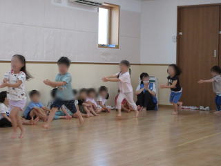 1歳「ほし組」はからだダンダン体操、障害物サーキット、そして「金魚がにげた」です。